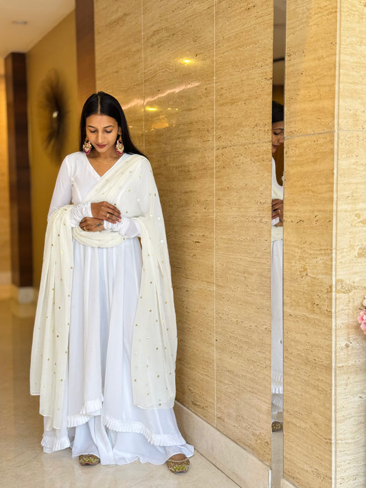 #MBA1820 High low anarkali set- white