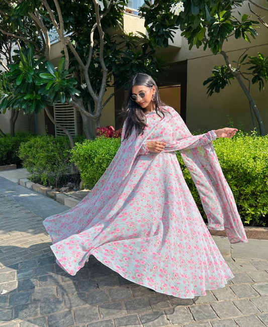 #MBA1833 Bahar gota anarkali and dupatta- White