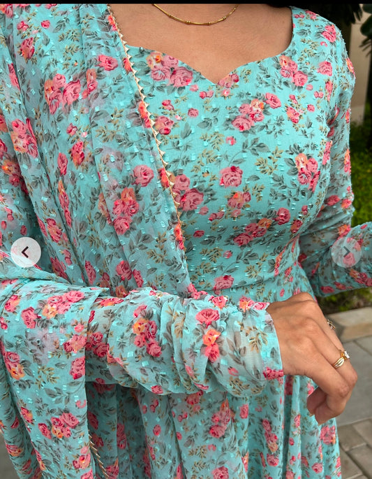 #MBA1832 Bahar gota anarkali and dupatta- sky blue
