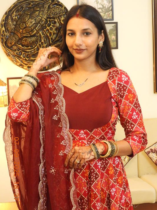 #MBA2048 Pure Chinon Silk Embroidered Anarkali Set - Maroon