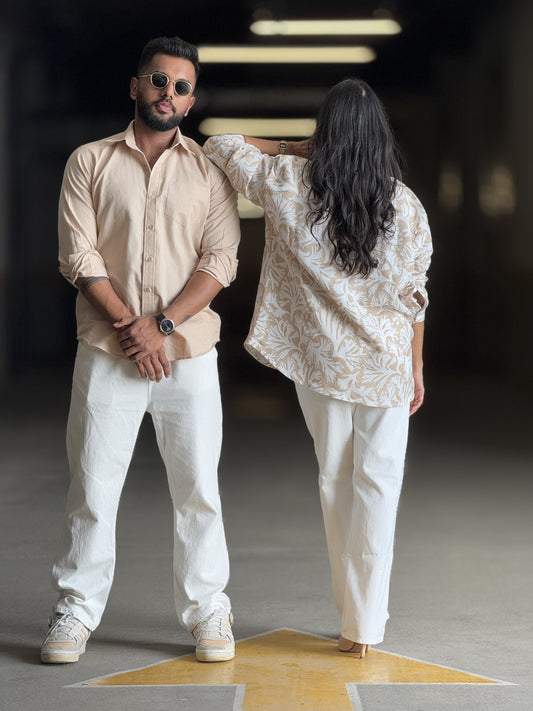 #MBA1901 Men's Pure Linen shirt- Warm ivory