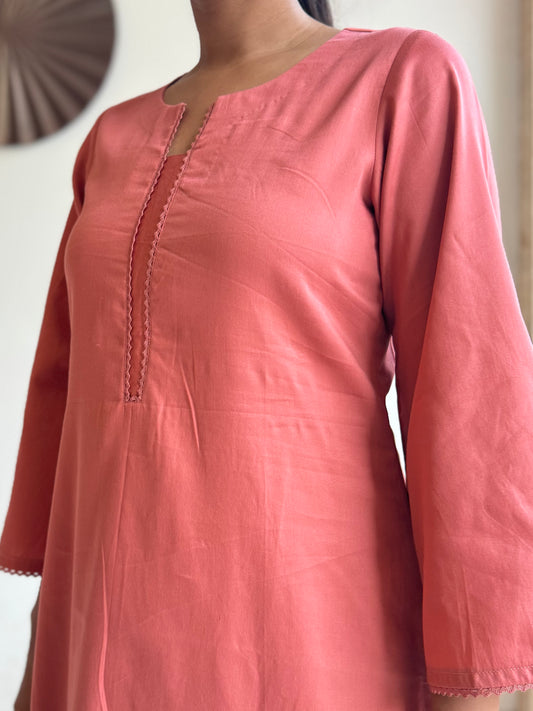 #MBA1806 Rozana Kurta pant set- Coral pink