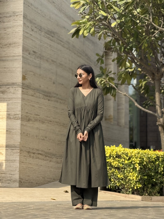 #MBA1857 Ruhaniyat kurta pant with dupatta-Dark olive