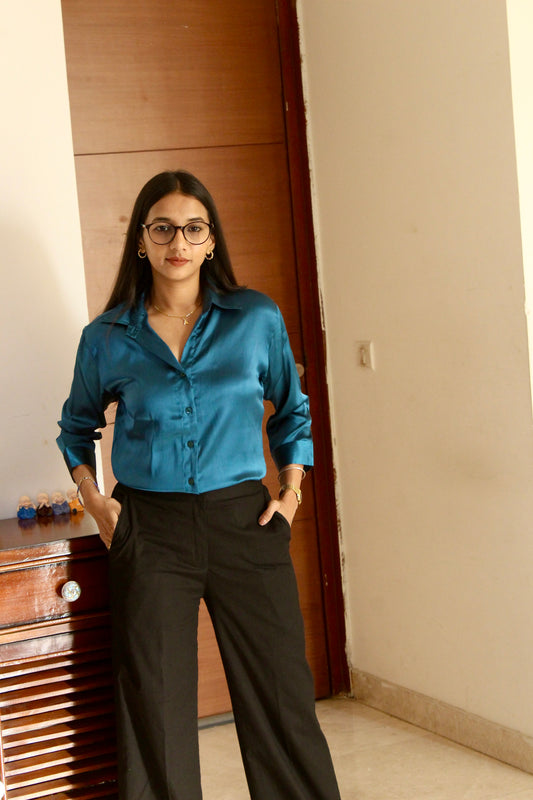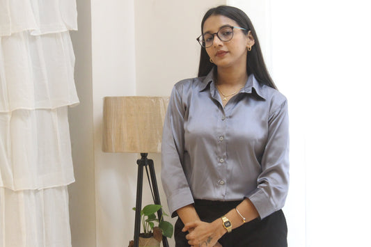 #MBA1932 Luxe formal satin shirt- Coral pink