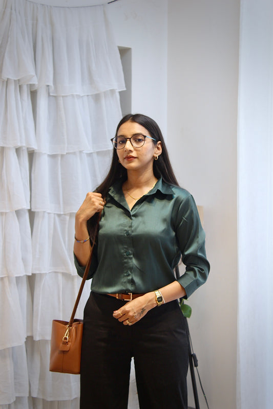 #MBA1936 Luxe formal satin shirt- Pistachio