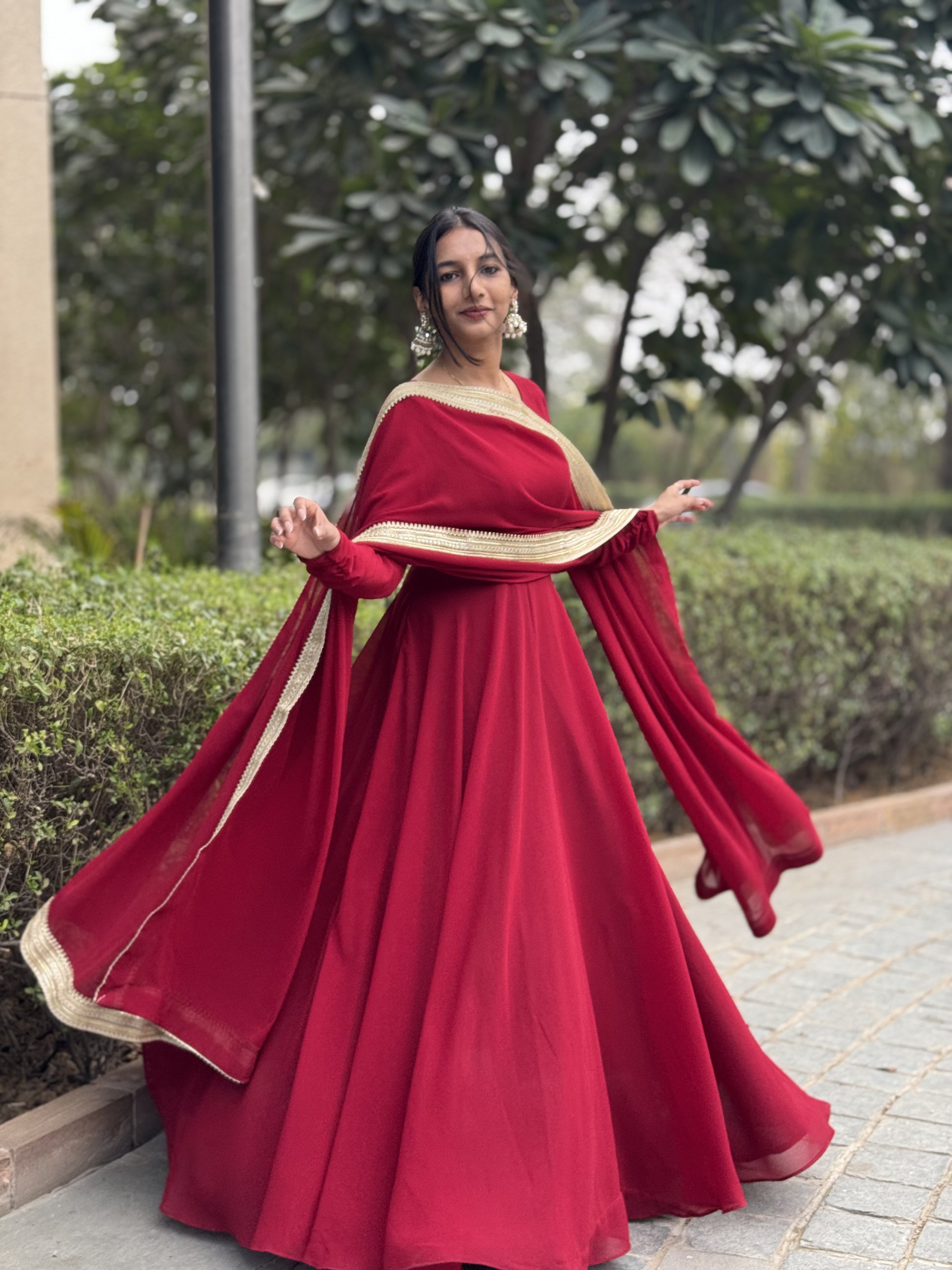#MBA1330 Raima anarkali and dupatta-Maroon