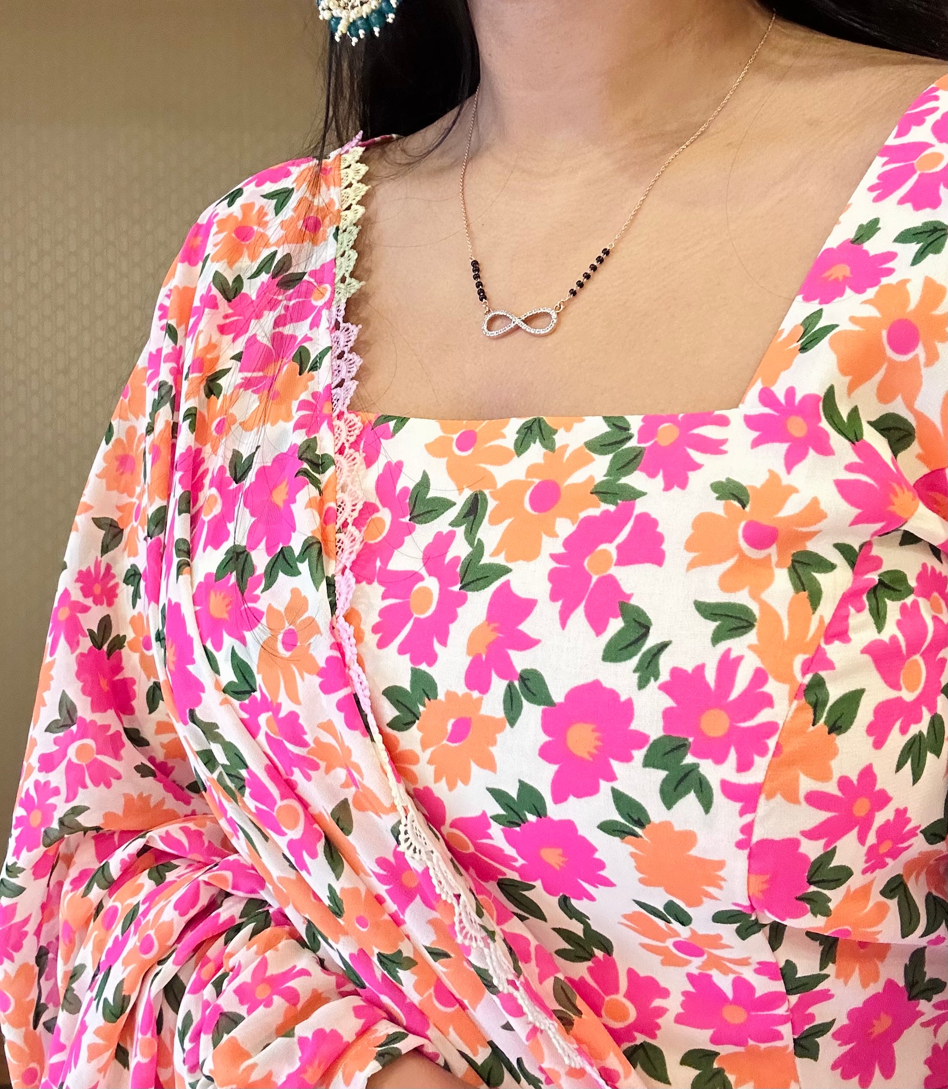 #MBA1661 Bageecha pink floral anarkali and dupatta
