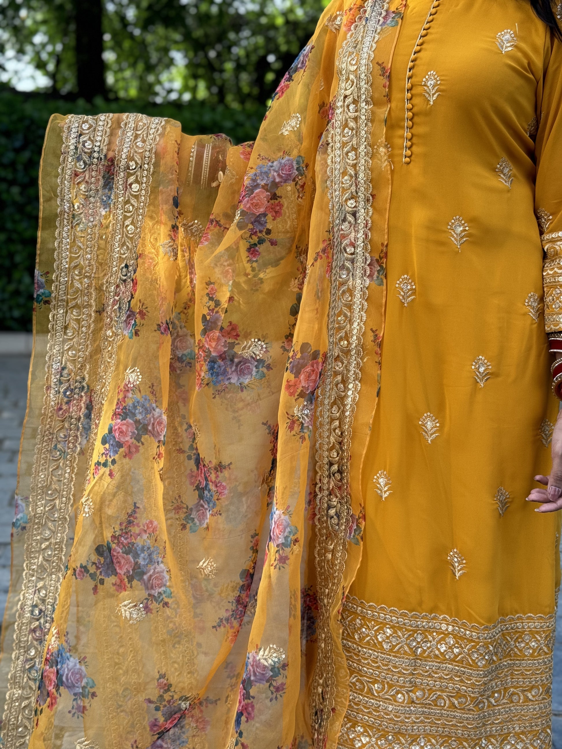 - Fabric: Premium Georgette (Suit), Organza (Dupatta)