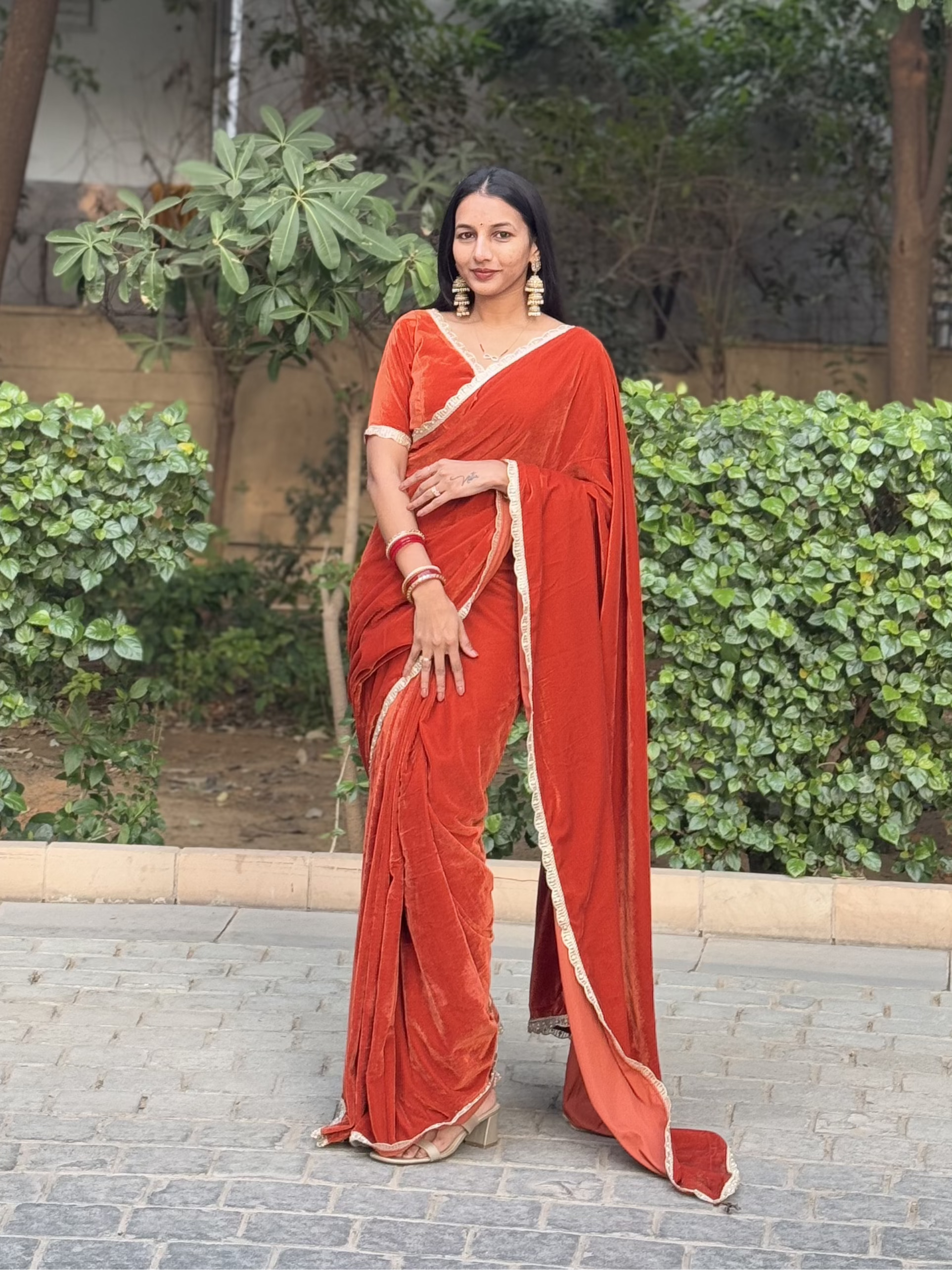 #MBA1726 Mastaani velvet 1 min saree and blouse- Burnt orange