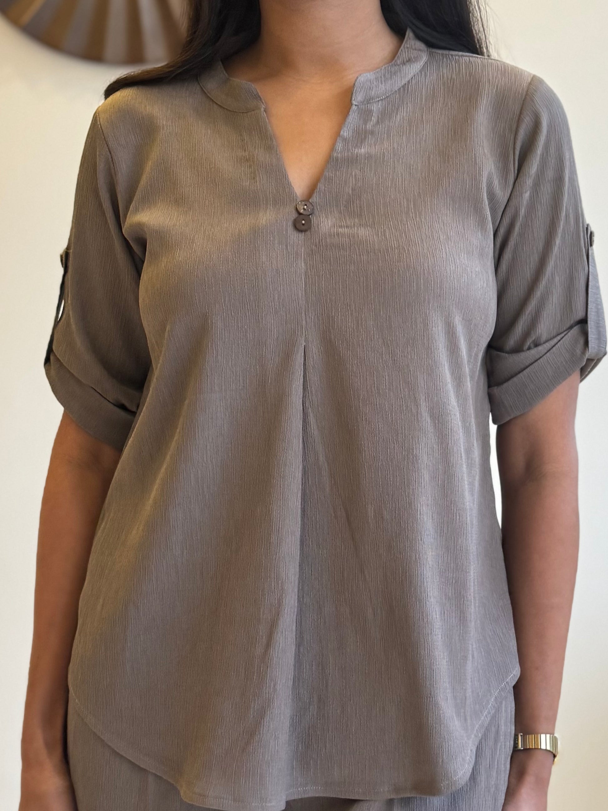 This effortlessly stylish coord set is the perfect blend of comfort and sophistication, designed for your everyday needs. Whether you're heading to the office, enjoying a Sunday brunch, or traveling to your next destination, this set offers versatility and ease without compromising on style. The relaxed-fit pants feature convenient pockets, while the perfectly tailored top gives a flattering fit that pairs seamlessly with the wide-legged trousers. A true must-have for your casual wardrobe.