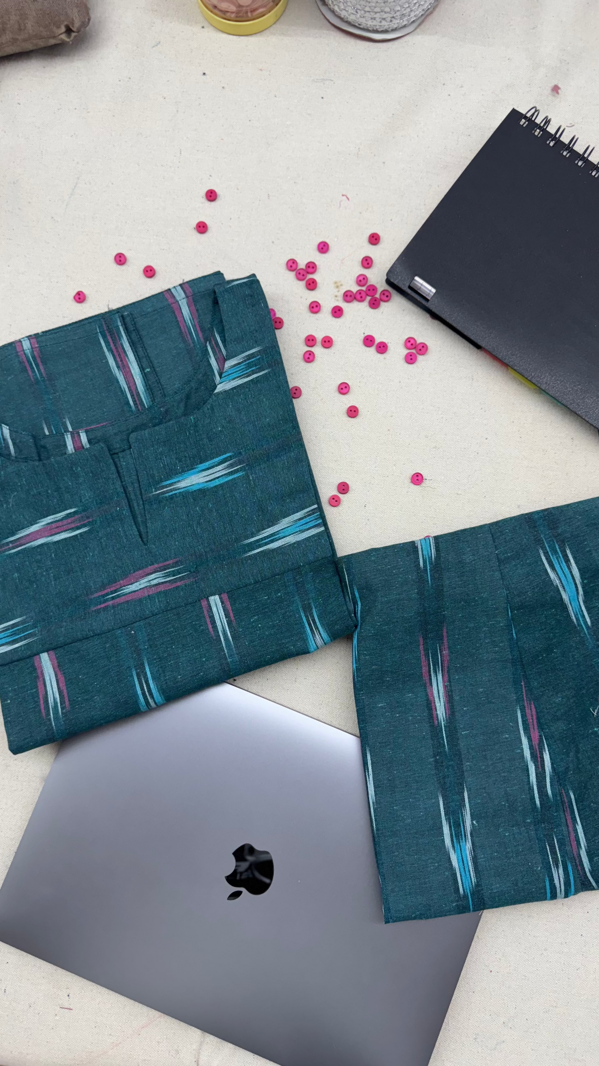 #MBA1864 Ikkat 2.0- dark green kurta and pant