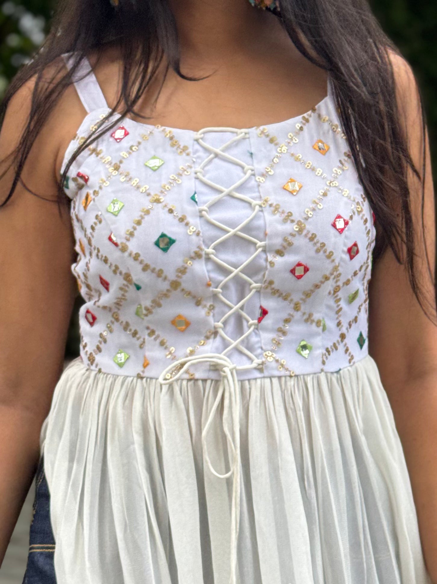 Crafted in rich festive georgette fabric with subtle shimmer or traditional motifs (customizable), it pairs effortlessly with flared pants, shararas, or even a draped skirt for a contemporary twist. A statement in itself or layered with a dupatta — this piece promises timeless charm with every wear.