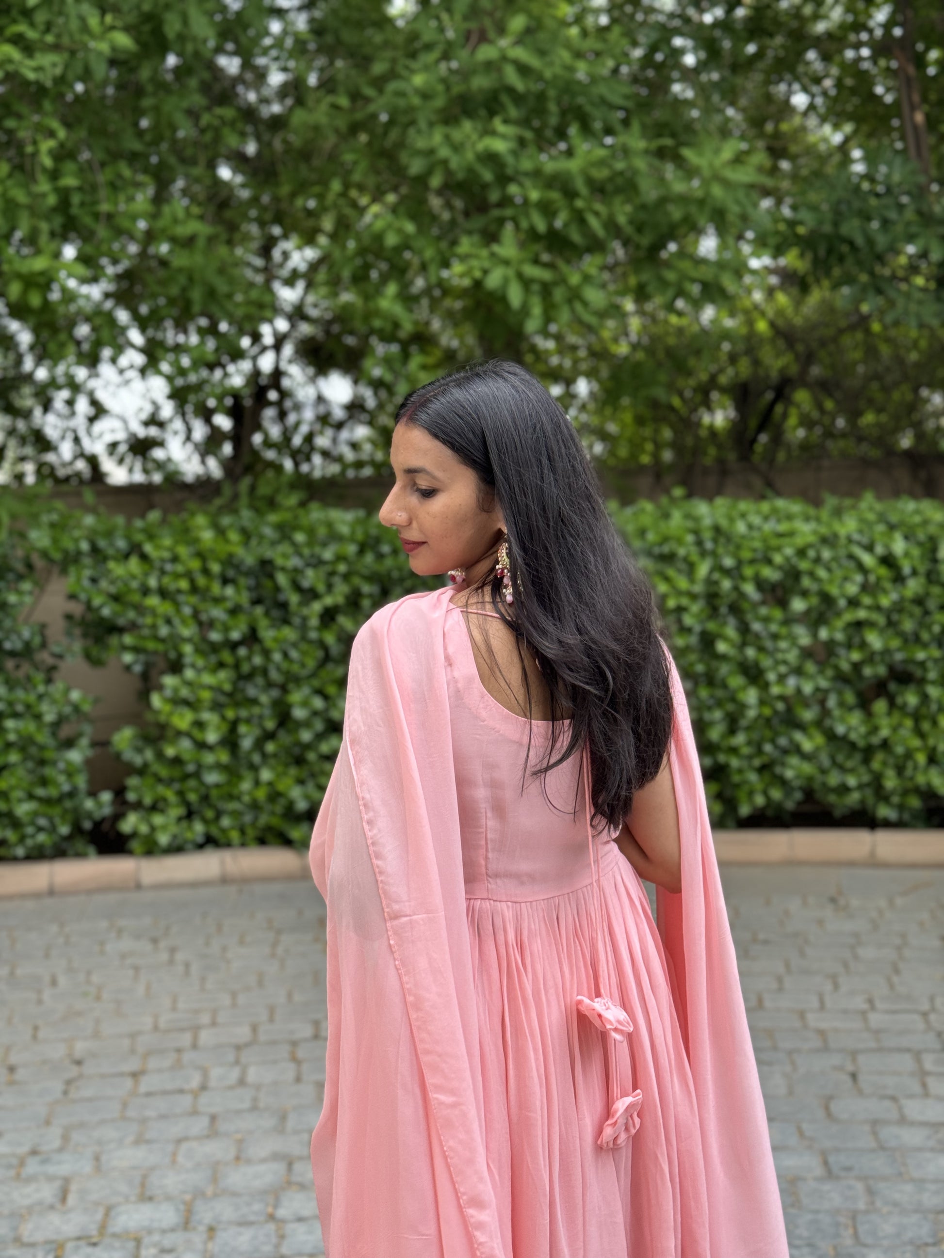The kurta features delicate detailing with a soft, fluid drape that flatters every frame, while the flared gharara pants bring a regal charm with every step. Made in premium pure georgette, the outfit offers a lightweight, breezy feel without compromising on richness. Subtle embroidery or lace accents (customizable) add a whisper of opulence, making it an effortless pick for modern-day royalty.