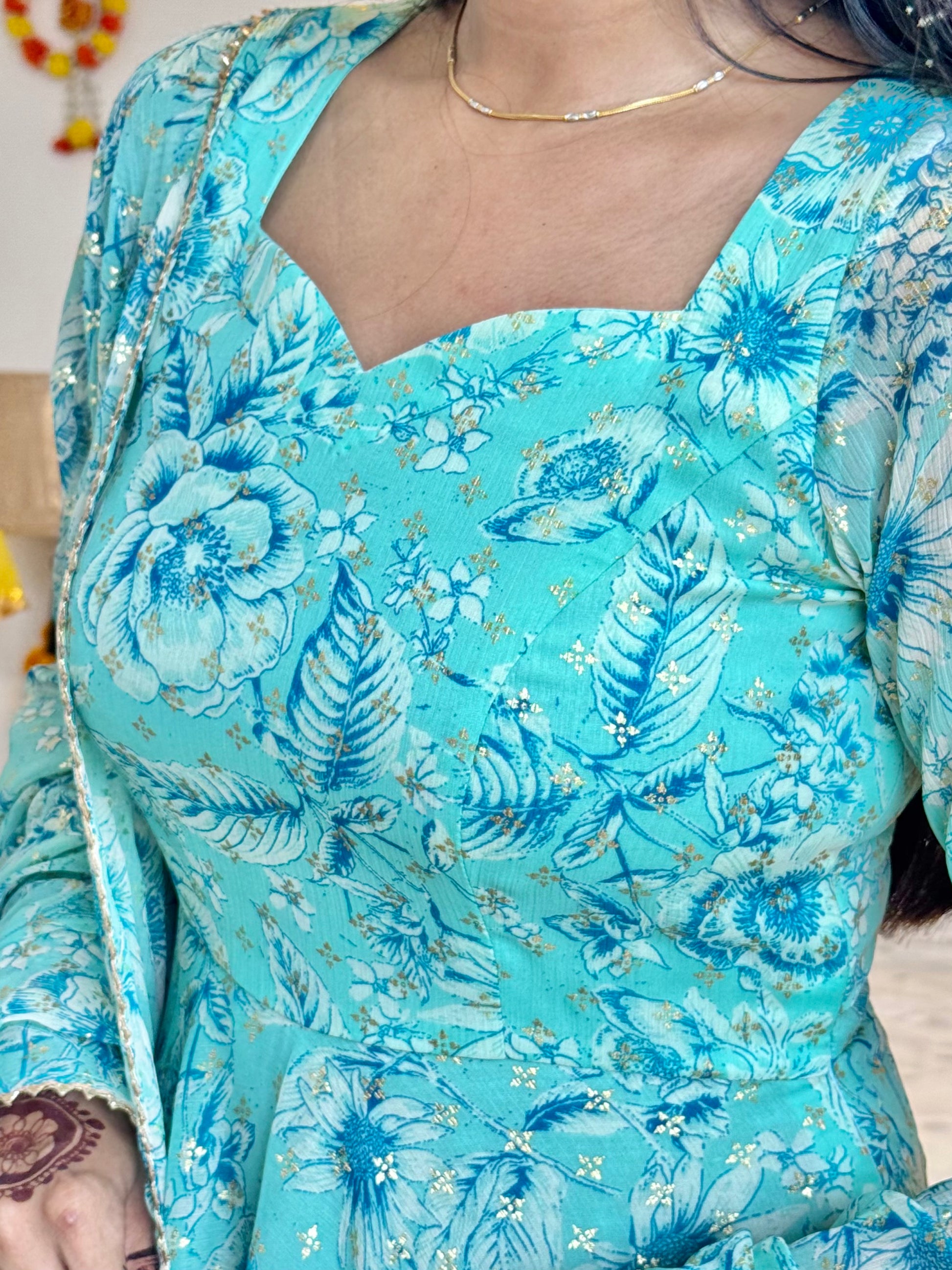 #MBA2029 Sea Green gold foil anarkali and dupatta