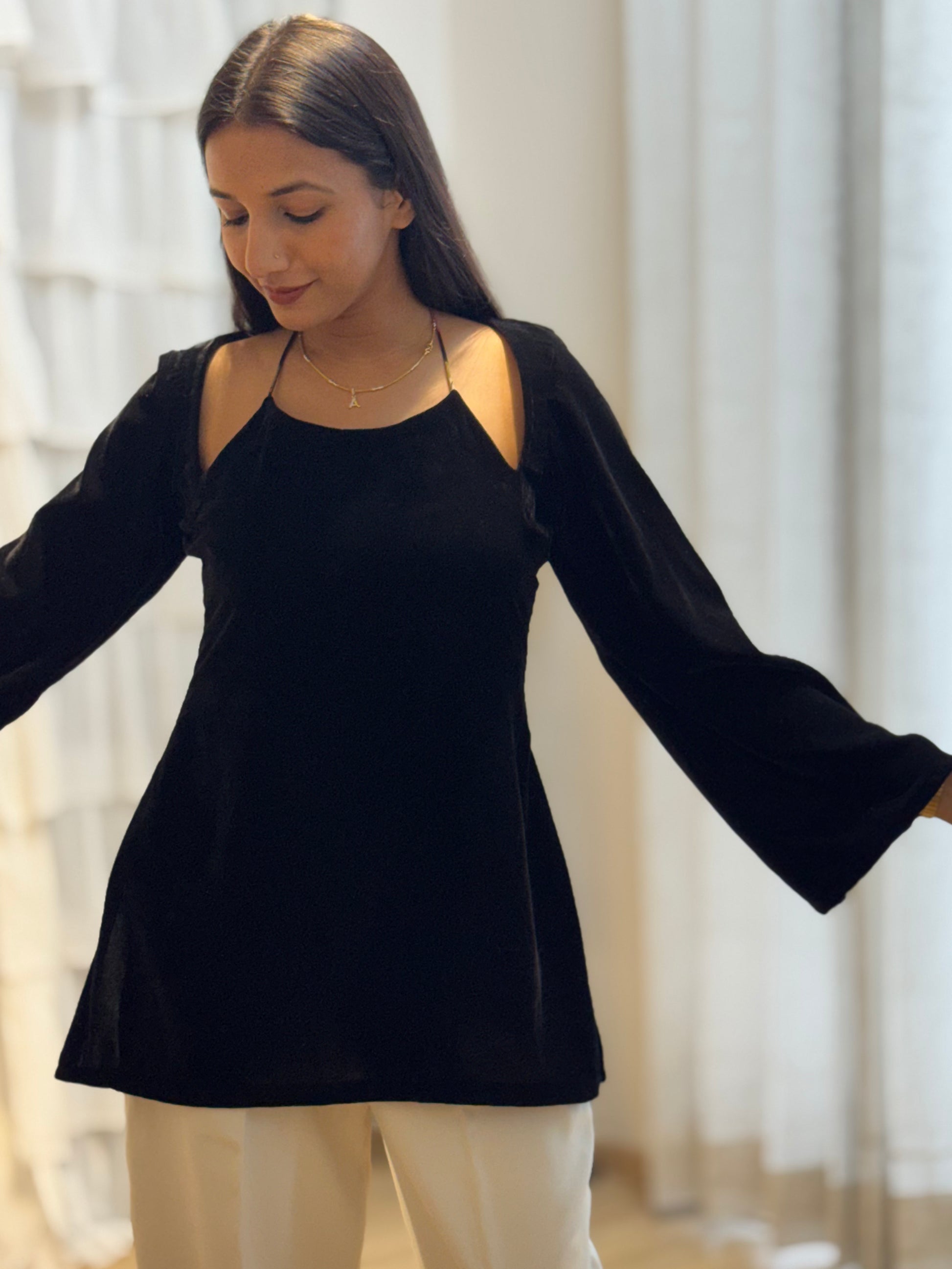 #MBA2061 Velvet short kurti- Black
