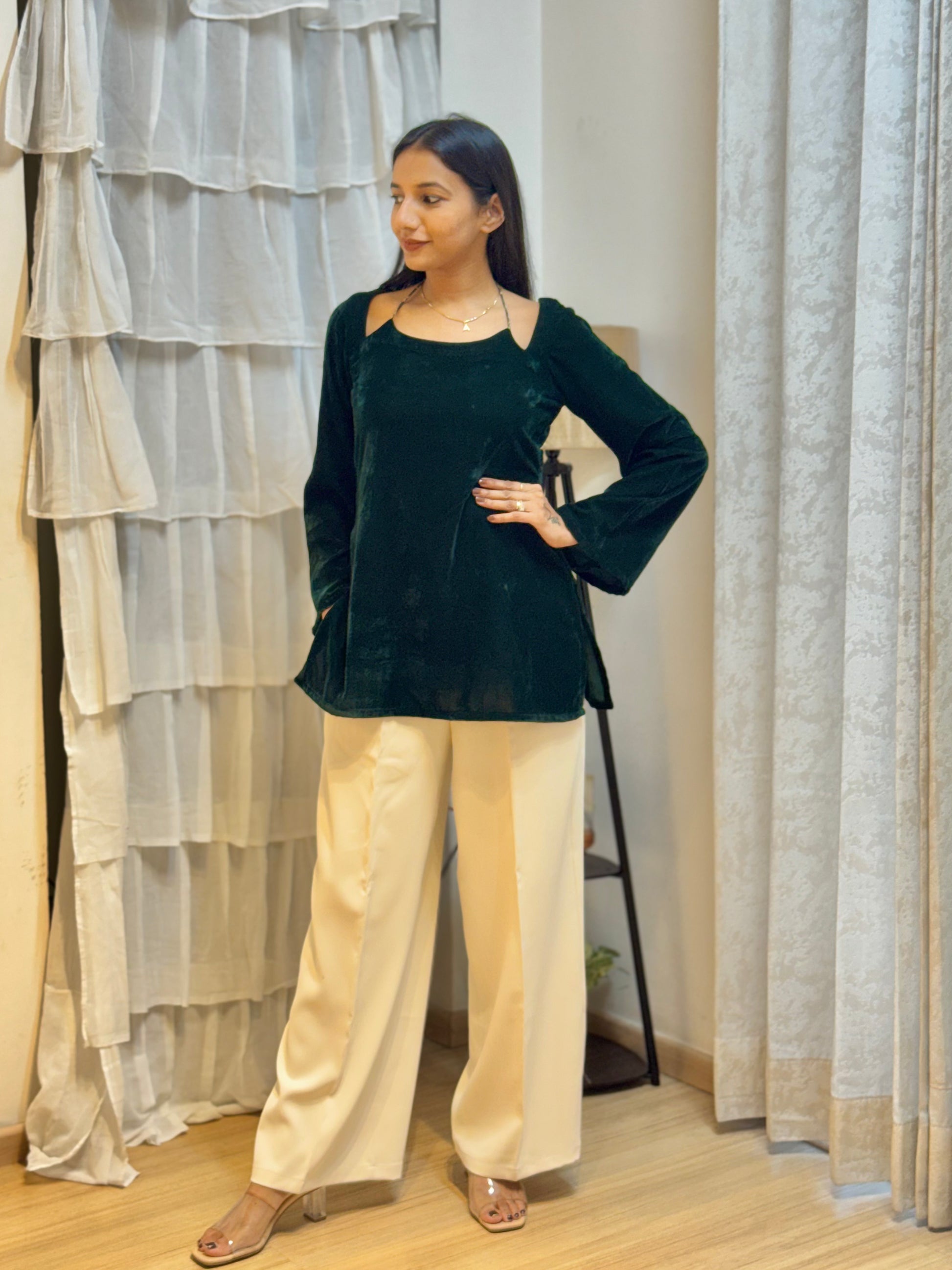 Perfect for winter gatherings, festive evenings, or a cozy dinner out — pair it with classic trousers or a flared jeans to make it your own.