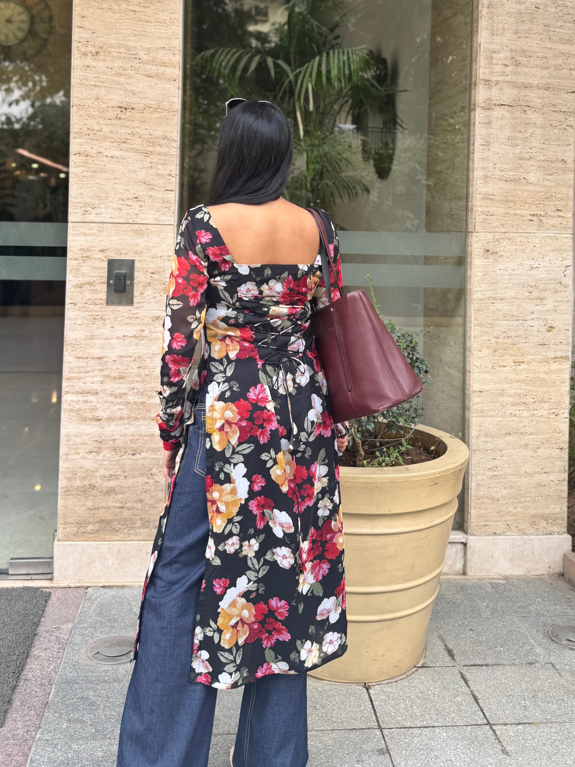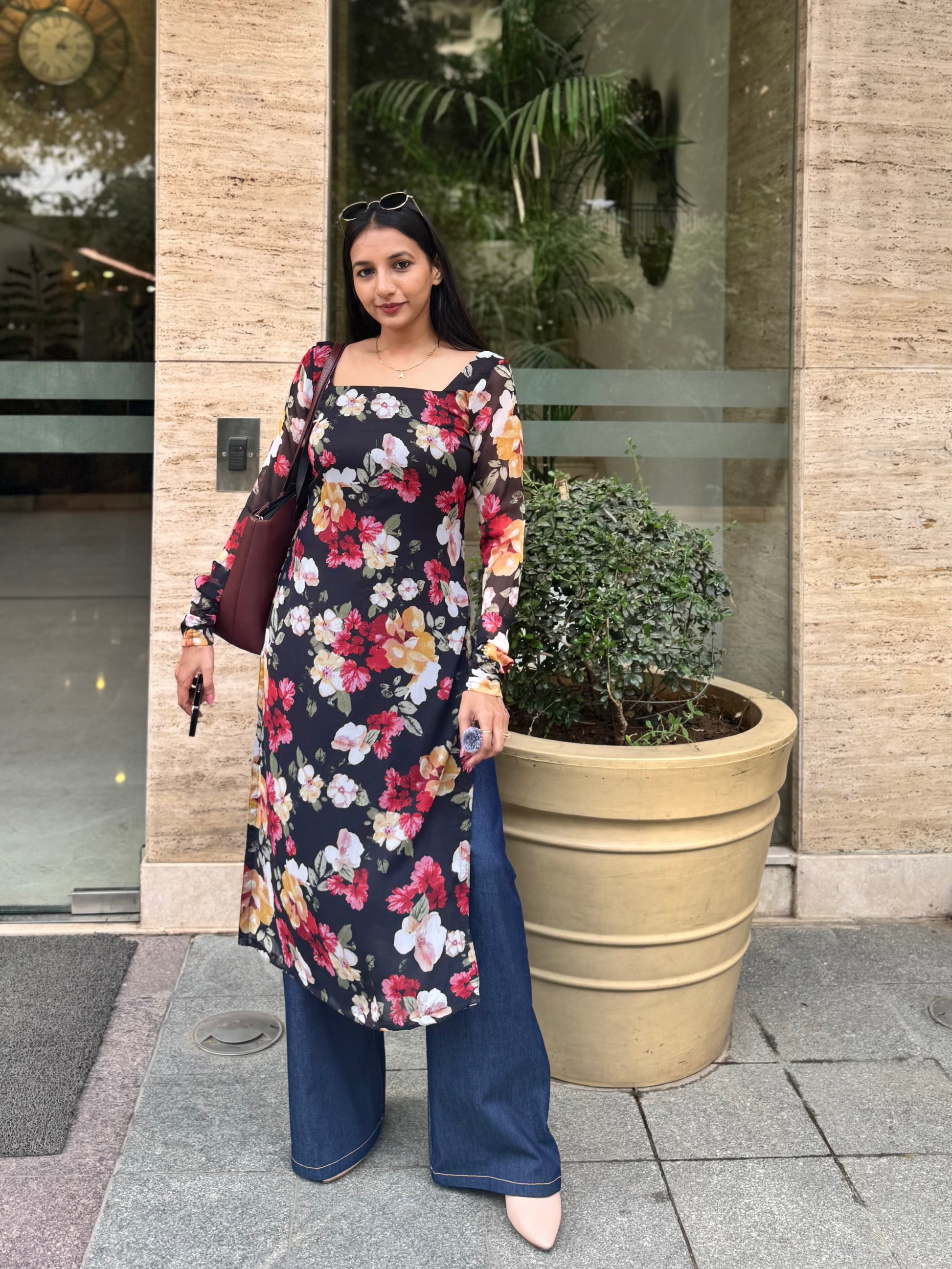 Meet the kurti that feels as good as it looks. Crafted in soft, fine georgette with a breathable cotton lining, it falls beautifully without feeling heavy. The churidaar sleeves keep the look classic, while the criss-cross back gives it a subtle modern twist — making it perfect for college, office, brunches, or an easy casual day out