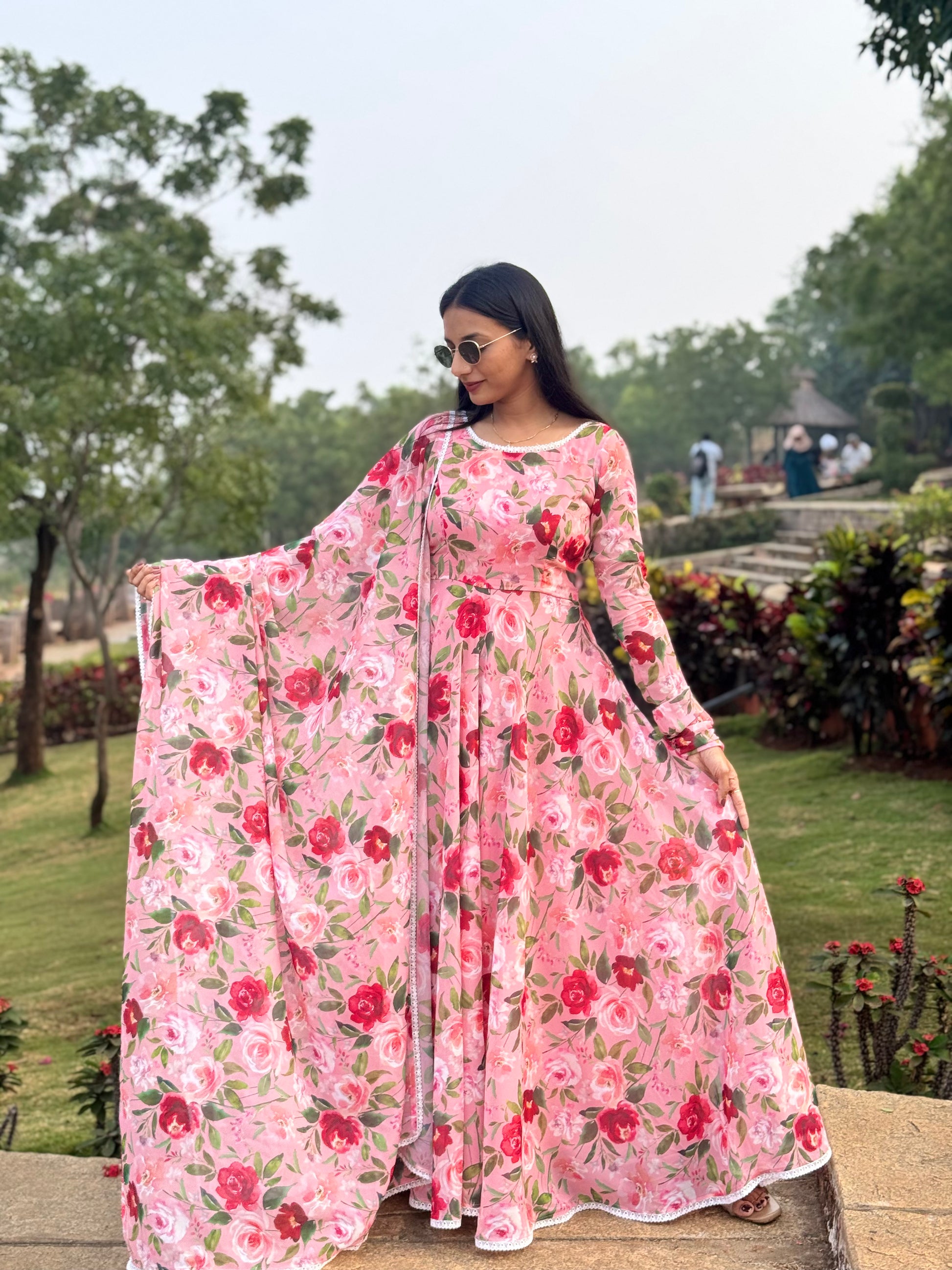 #MBA2081 Peachy rose anarkali and dupatta